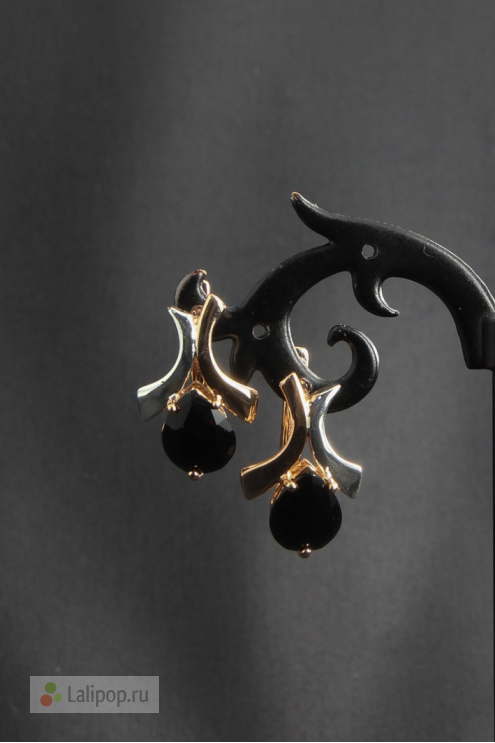 Великолепные серьги, выполненые из ювелирного сплава цвета золота и серебра. Серьги украшены крупным цирконом черного цвета.