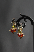 Великолепные серьги, выполненые из ювелирного сплава цвета золота и серебра. Серьги украшены фианитами красного и зеленого цвета.
