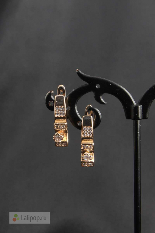 Великолепные серьги, выполненые из ювелирного сплава цвета золота. Серьги украшены фианитами белого цвета.