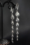 Великолепные серьги, выполненые из ювелирного сплава цвета серебра. Серьги украшены цирконами прозрачного цвета.