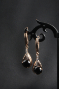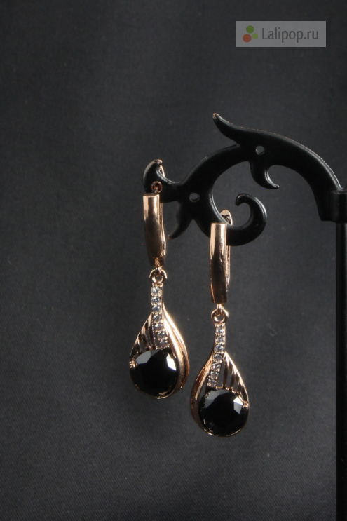 Великолепные серьги, выполненые из ювелирного сплава цвета золота. Серьги украшены цирконами черного и прозрачного цвета.