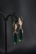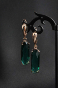Великолепные серьги, выполненые из ювелирного сплава цвета золота. Серьги украшены цирконом зеленого цвета..