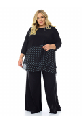 Туника с цельнокроеным рукавом и диагональным подрезом по переду и спинке. Верхняя часть из струящегося черного трикотажа "масло", нижняя часть из черного шифона в ментоловый горошек, двойная.