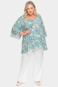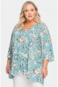 Свободная туника с асимметричной линией низа из эластичной, струящейся ткани. V-вырез горловины. Рукав расклешенный. Идеально сочетается с джинсами, зауженными брючками.