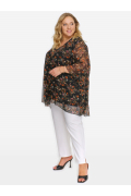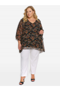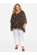 Свободная туника с асимметричной линией низа из шифона. V-вырез горловины. Рукав расклешенный. Идеально сочетается с джинсами, зауженными брючками.