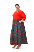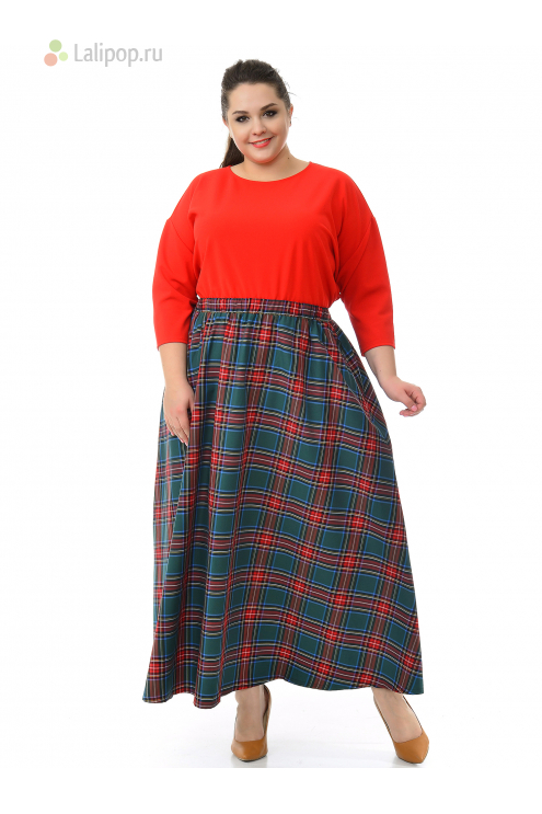 Длинная расклешеная юбка из ткани с эластаном. Верх на широкой резинке, в боковых швах - карманы.