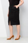 Роскошная юбка-карандаш, выполнена из эластичной замши. Пояс по бокам оформлен резинкой, сзади застежка на молнию и пуговицу. Вытачки в зоне пояса обеспечивают идеальную посадку по талии. По бокам функциональные карманы. Спереди шлица для свободы шага.