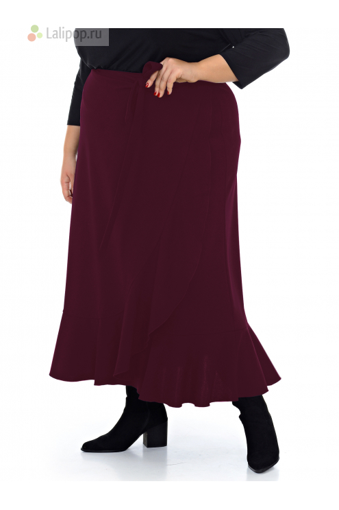 Роскошная юбка с запАхом из крепа с эластаном По закругленному срезу переда и нижнему срезу юбки проходит волан.