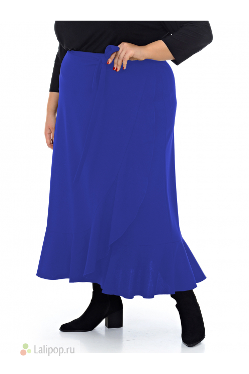 Роскошная юбка с запАхом из крепа с эластаном По закругленному срезу переда и нижнему срезу юбки проходит волан.