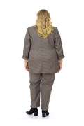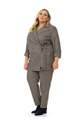 Элегантный жакет выполнен из костюмной ткани в актуальном принте "гленчек". Ткань содержит вискозу и небольшой процент эластана. Модель прямого силуэта с воротником пиджачного типа и длинными рукавами, которые можно подвернуть как показано на фото. Жакет завязывается на пояс, одна часть которого втачана в правый борт, вторая в левый боковой шов. Жакет без подкладки. Ткань костюмная, состав: полиэстер - 83%, вискоза,- 15%, эластан - 2%. Цвет - "гленчек" оливково-коричневый Принт "гленчек" или "гусиная лапка" представляет собой двухцветный геометрический узор, сочетающий асимметричные линии и абстрактные многоугольники. Длина изделия - 77 см по центру спинки. Рост модели 173 см.